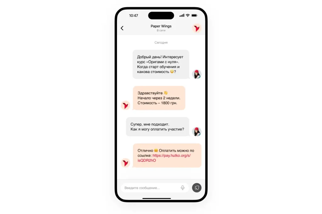 Создайте линк на оплату с необходимыми параметрами и делитесь им в разных каналах связи с клиентами или добавьте в скрипт своего чат-бота. Быстрая коммуникация, прямой переход на платежную страницу и удобные способы расчета увеличивают лояльность аудитории к вашему бренду и доход бизнеса в целом.