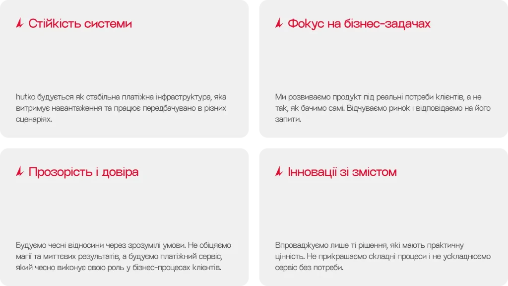 hutko – український платіжний сервіс, який рухає бізнеси вперед. Ми створюємо готові рішення для eCommerce, маркетплейсів, платформ, сервісів за підпискою, HoReCa, благодійних фондів тощо та допомагаємо їм масштабуватись.