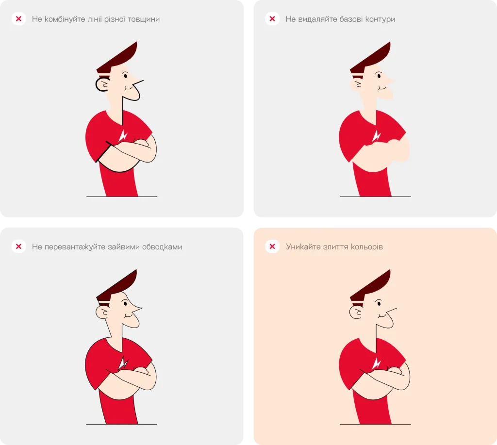 Уникайте різної товщини ліній у межах однієї ілюстрації, надмірних обведень і декоративних ефектів, не видаляйте базові контури та не поєднуйте векторне зображення із недостатньо контрастним фоном.