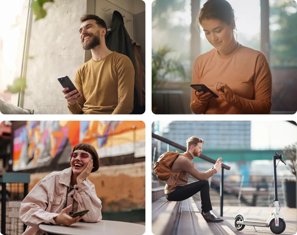 Використовуйте зображення реальних людей у природних життєвих моментах. Фото мають виглядати органічно та правдиво, демонструючи ситуації, в яких hutko може бути частиною повсякденного досвіду користувача.