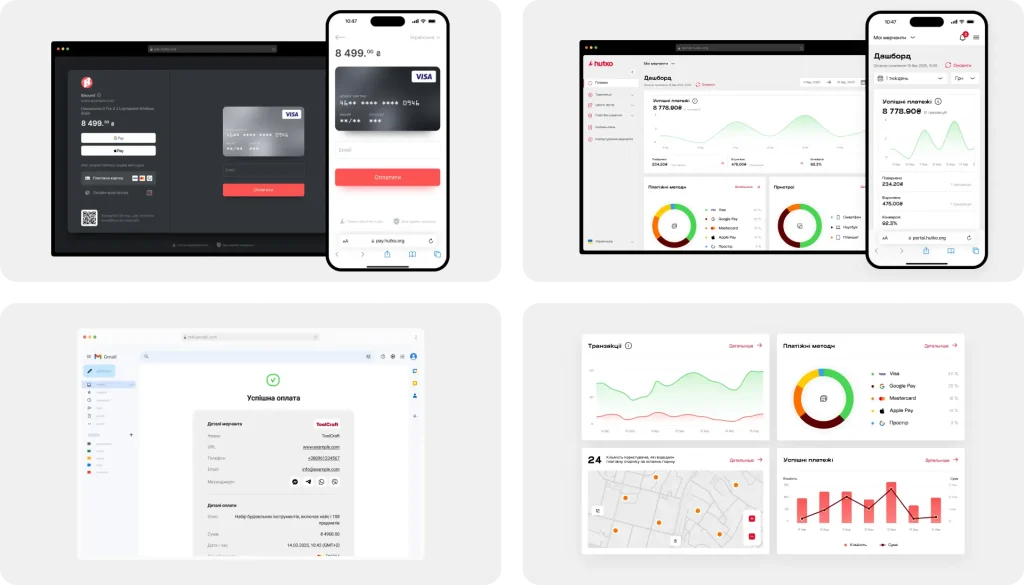 Використовуйте зображення інтерфейсів для демонстрації можливостей продуктів hutko. Вони мають бути впізнаваними, читабельними і відображеними без змін, щоб зберегти довіру користувачів до сервісу. Такі віжуали доцільно застосовувати у презентаціях, на сайті та в матеріалах, де важлива функціональна прозорість і зрозумілість.