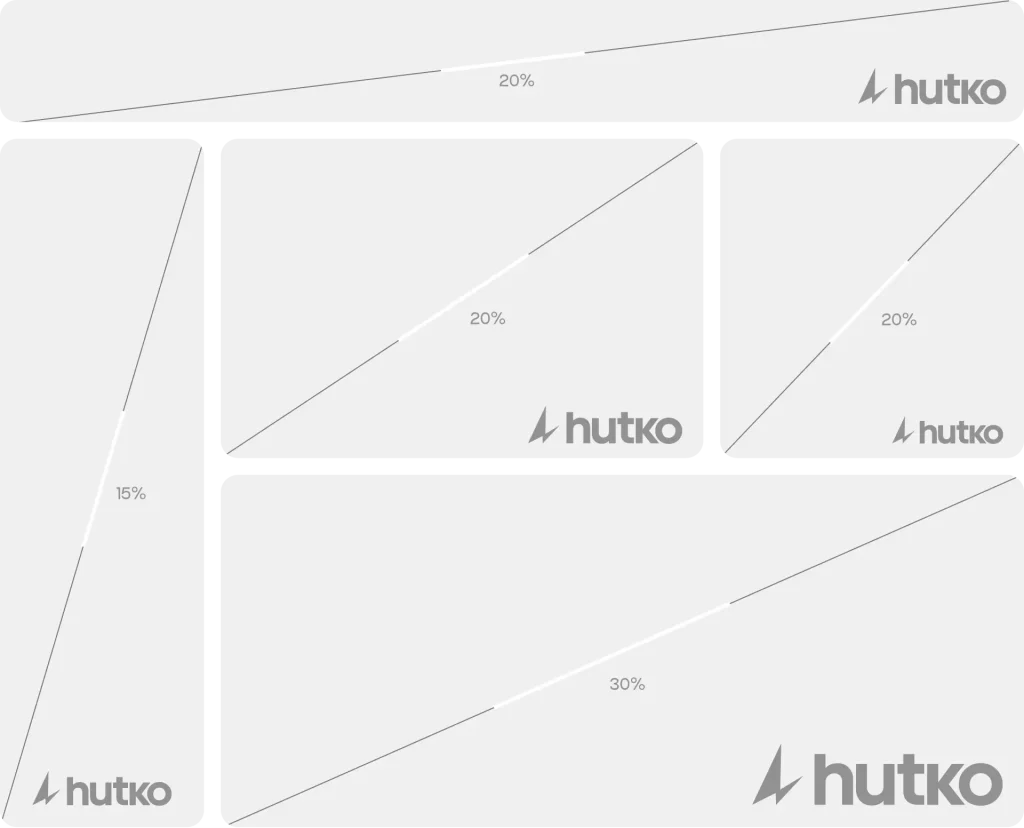 Головний символ hutko – блискавка, яка втілює динамічність, швидку адаптацію сервісу до змін, стрімке зростання бізнесу з нашою підтримкою та миттєвий прийом оплат з усього світу. Ми пишаємося своїм логотипом, тому нижче пояснюємо, як правильно з ним працювати, щоб зберегти його автентичність та закладені в нього цінності.