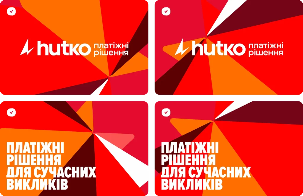 Фірмовий візерунок hutko – важливий складник нашої айдентики, який має дві ключові функції. Перша – фоновий акцент для створення візуальної сталості. Друга – стилізований контейнер для розміщення графічних елементів. Патерн має в основі восьмикутну зірку, композиція якої складається з кількох кольорів. Разом вони формують візуальний ритм і дозволяють інтегрувати візерунок у будь-які носії, зберігаючи впізнаваність бренду. Щоб додати динаміки та глибини, ми використовуємо перспективу. Вона створює ефект просторовості, робить зображення виразним, а загальну стилістику – сучасною та технологічною.