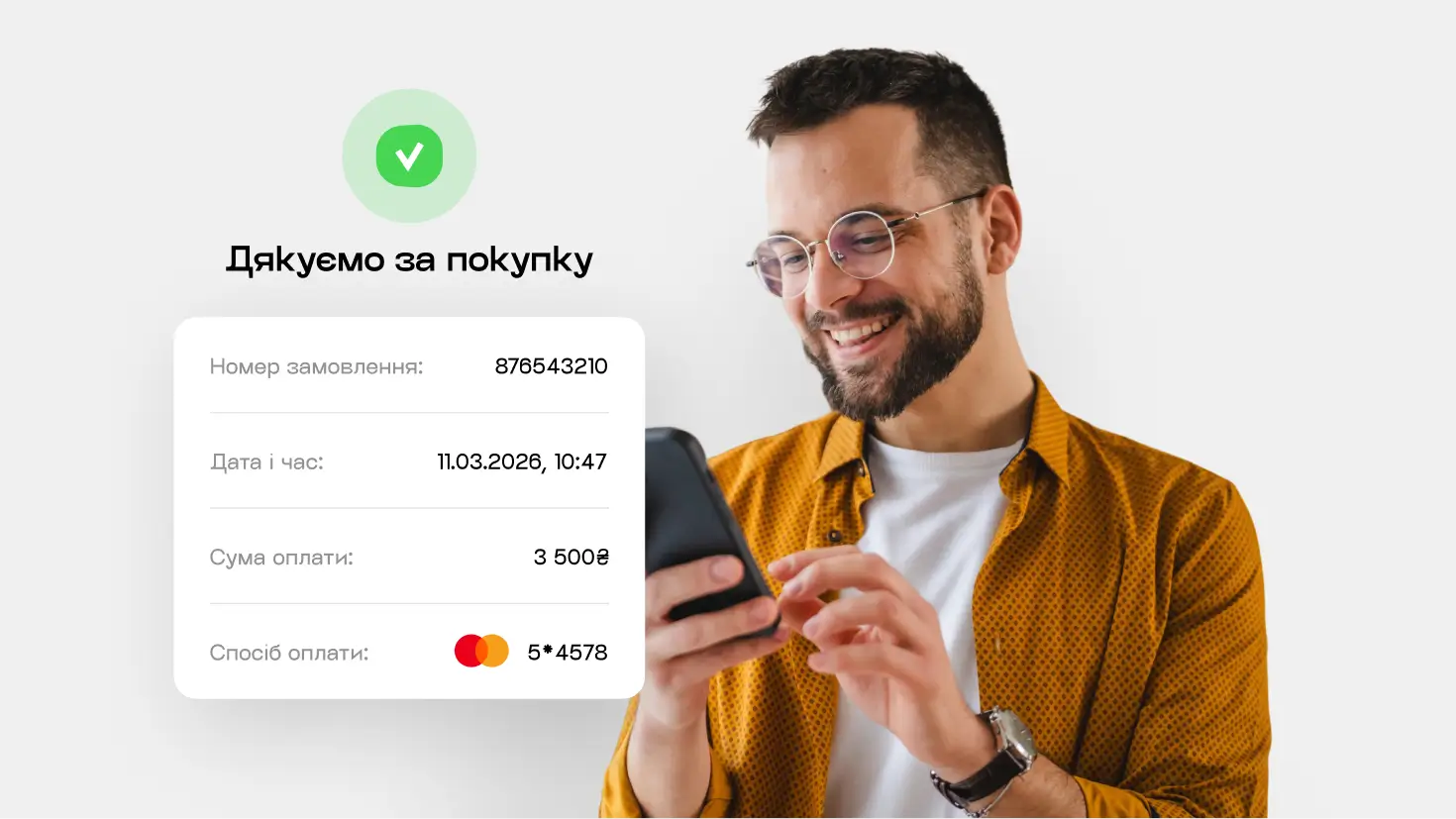 Платіжне посилання, QR-код, кнопка на сайті чи оплата в месенджері − клієнт проводить оплату всього за 10–15 секунд. Це дуже зручно для доставки, послуг, фрілансу, виїзної торгівлі чи невеликої торгової точки без касового апарату.