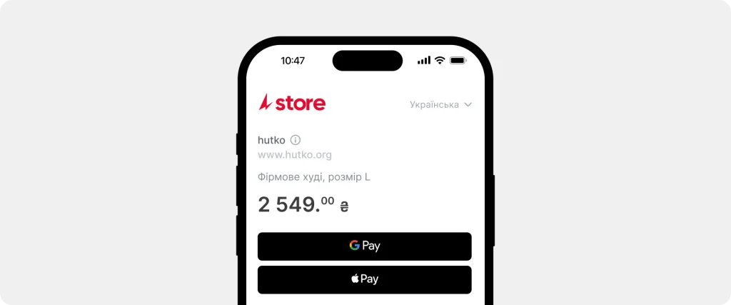 Оплата за допомогою електронних гаманців Apple Pay та Google Pay – це максимальна зручність і швидкість розрахунку без введення платіжних реквізитів банківської картки. Так клієнти можуть оплачувати свої замовлення на сайтах, в інтернет-магазинах чи інших каналах продажу в один дотик, а бізнес підвищує конверсію успішних платежів і лояльність користувачів. Саме це отримують мерчанти hutko, бо розрахунок електронними гаманцями Apple Pay та Google Pay доступний їм без додаткових зусиль.