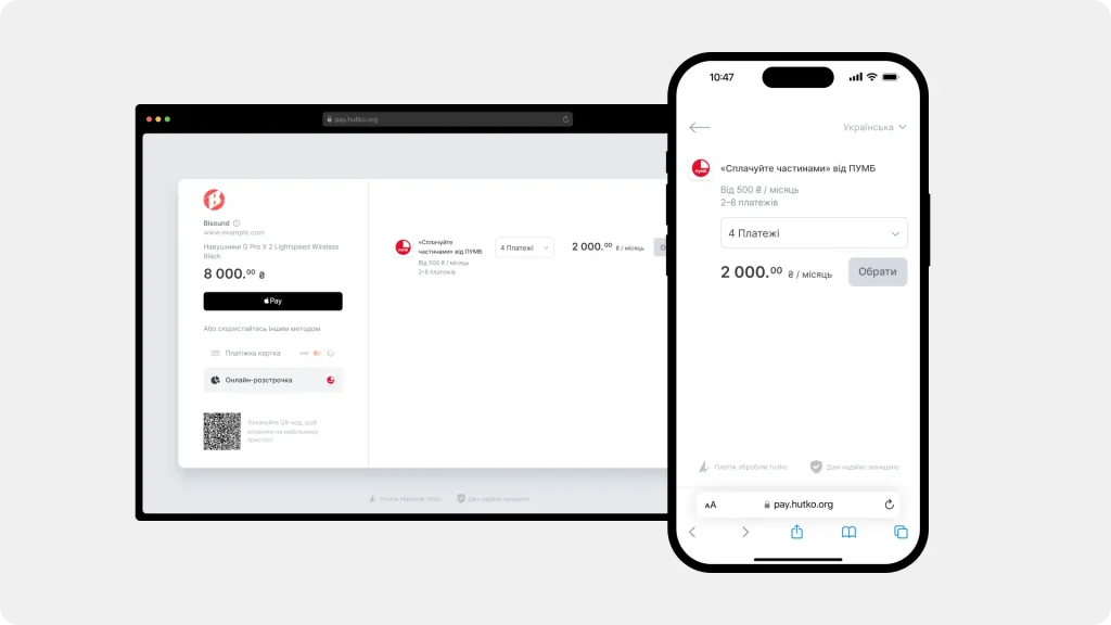 Оплата в розстрочку – це можливість для клієнтів купувати потрібні товари та замовляти послуги зараз, розділяючи суму замовлення на кілька платежів, та платити за них частинами у своєму темпі. Разом із ПУМБ ми відкриваємо бізнесам нові можливості та допомагаємо збільшити прибуток без жодних ризиків, оскільки мерчанти отримують всю суму платежу одразу, а подальші розрахунки відбуваються між банком і клієнтом. Із нашим сервісом оплата у розстрочку інтегрується просто і прозоро, не ускладнюючи платіжний процес.