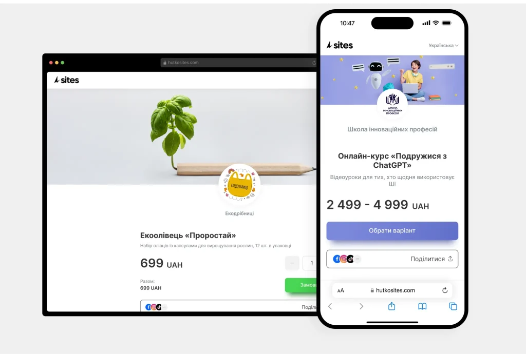 Запуск ідеї без вагань та довгої підготовки – з продуманими шаблонами можна за 5 хвилин створити лендинг чи простий інтернет-магазин із підключеним прийомом онлайн-оплат.